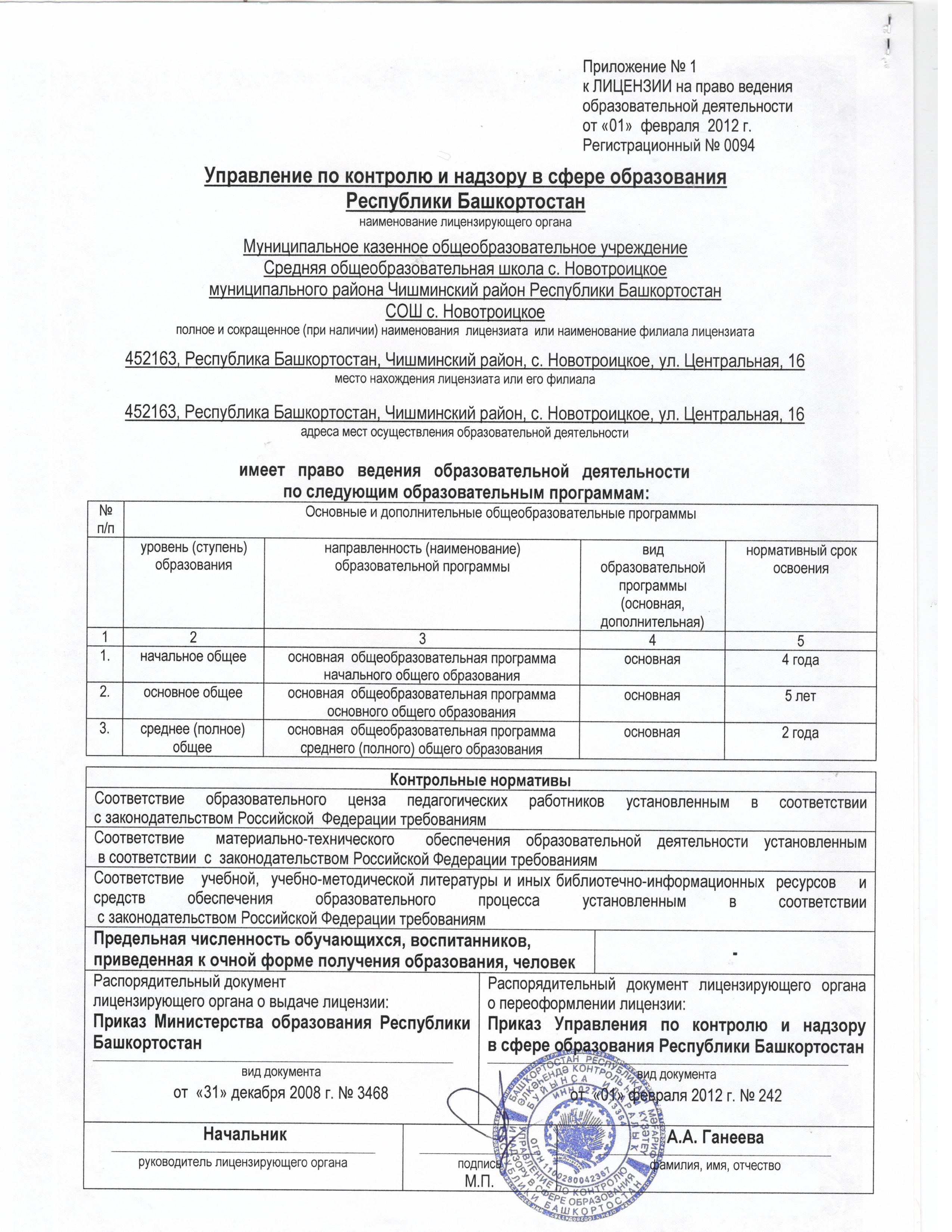 Приложение к лицензии